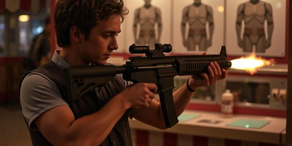 To hone his skills, Arty took a job at a local carnival, manning the shooting gallery. The carnival was a cacophony of sounds, the laughter of children, the clinking of coins, and the distant music of a calliope. Each night, after the carnival closed, usually inaugurated by the lights on the carousel being turned off, he would practice tirelessly. Each try was timed with a motion detector and displayed generously on an electronic timer high above the booth that clocked the targets existence during the session – the timer would continue until all 29 targets were extinguished.